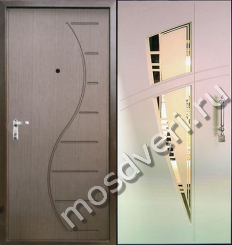 Темная входная дверь с отделкой ламинат и зеркалом ВДЗ-865 — объединяет эстетичность и высокую надёжность.