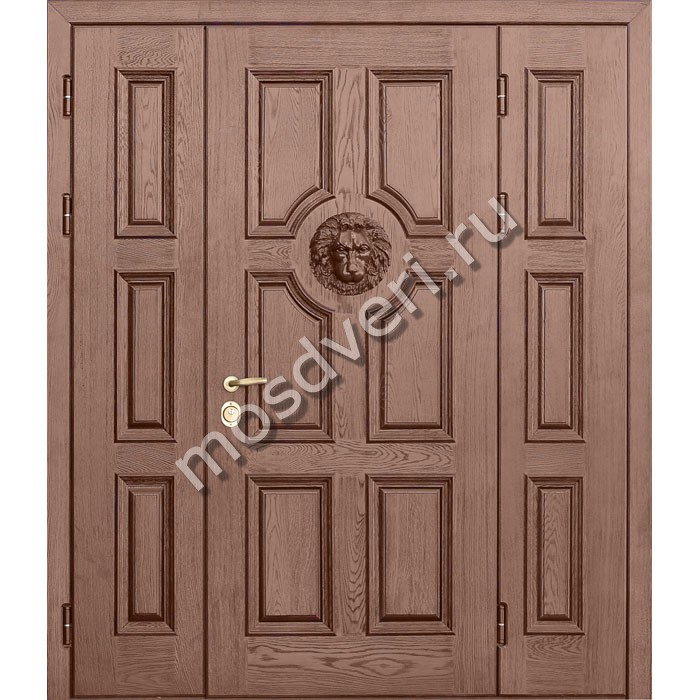 Металлическая парадная трехстворчатая дверь с резными элементами — сочетает в себе стильный внешний вид и максимальную защиту.