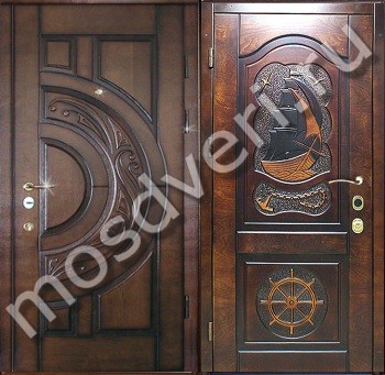 Элитная дверь в квартиру с отделкой массивом и фигурной резкой в Рыбинске